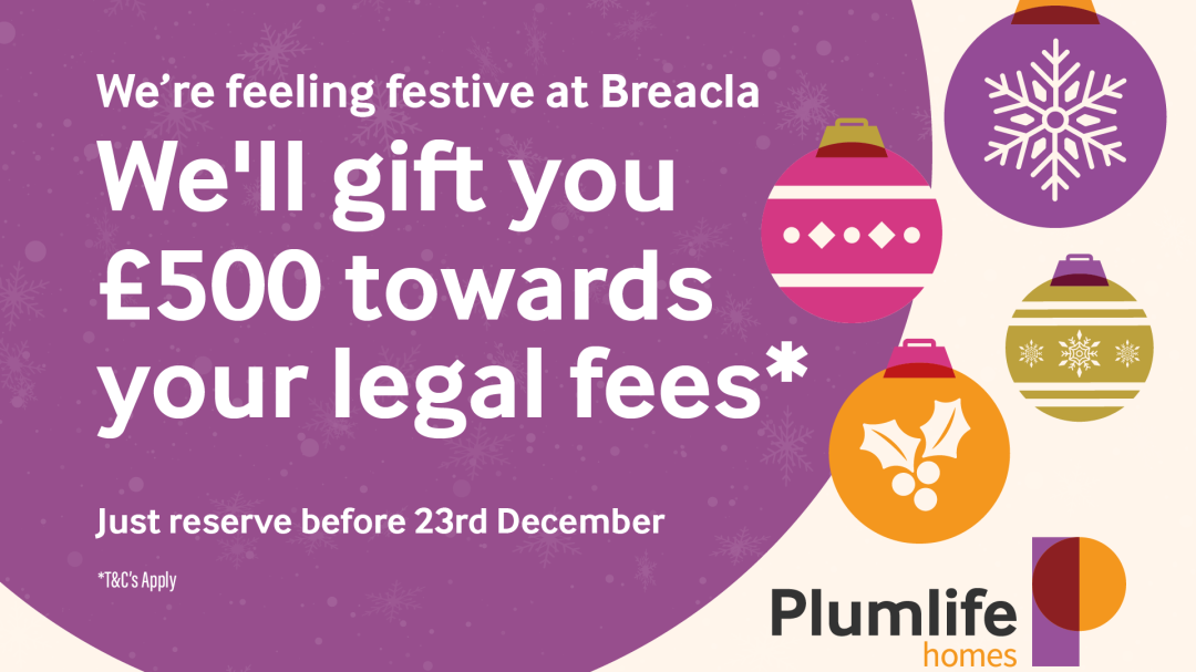 Plus, if you reserve a new home at Breacla before 23rd December, we’ll CONTRIBUTE £500 TOWARDS YOUR LEGAL FEES!* Enquire today to find out more.