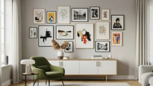 Fill your frames with colour samples, artwork, photographs, and mementoes and then hang them on the walls with adhesive strips. This will help create the sense that your home is properly lived in by cutting up huge empty spaces, while simultaneously not posing a threat to the walls thanks to the adhesives.