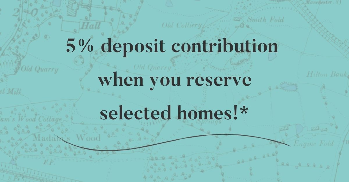 Receive up to a 5% deposit contribution when you reserve selected 3 and 4 bedroom homes, saving you thousands!* Get in touch today to find out more.