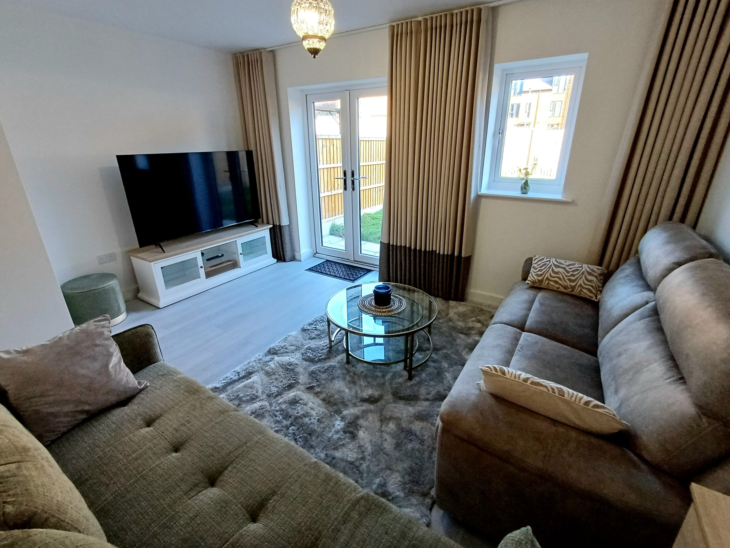 Externally to the front of the property there is a garden and a driveway, with an EV charger point. Side access leads to the rear garden and patio area.