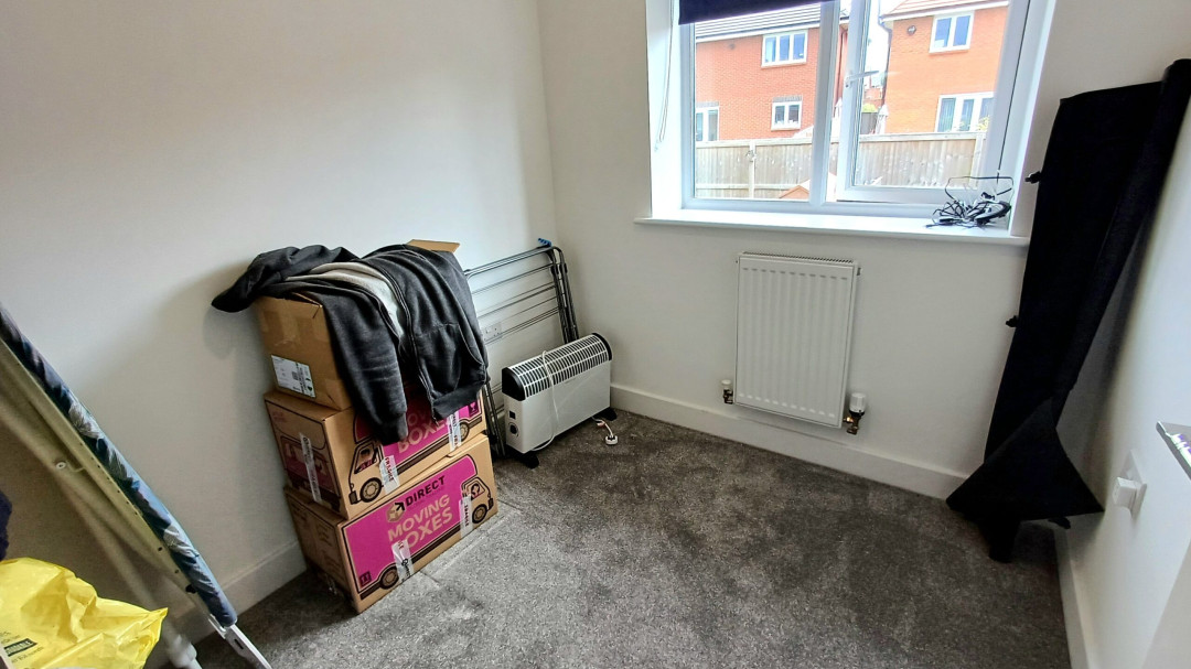 Radiator, storage cupboard, window to front.