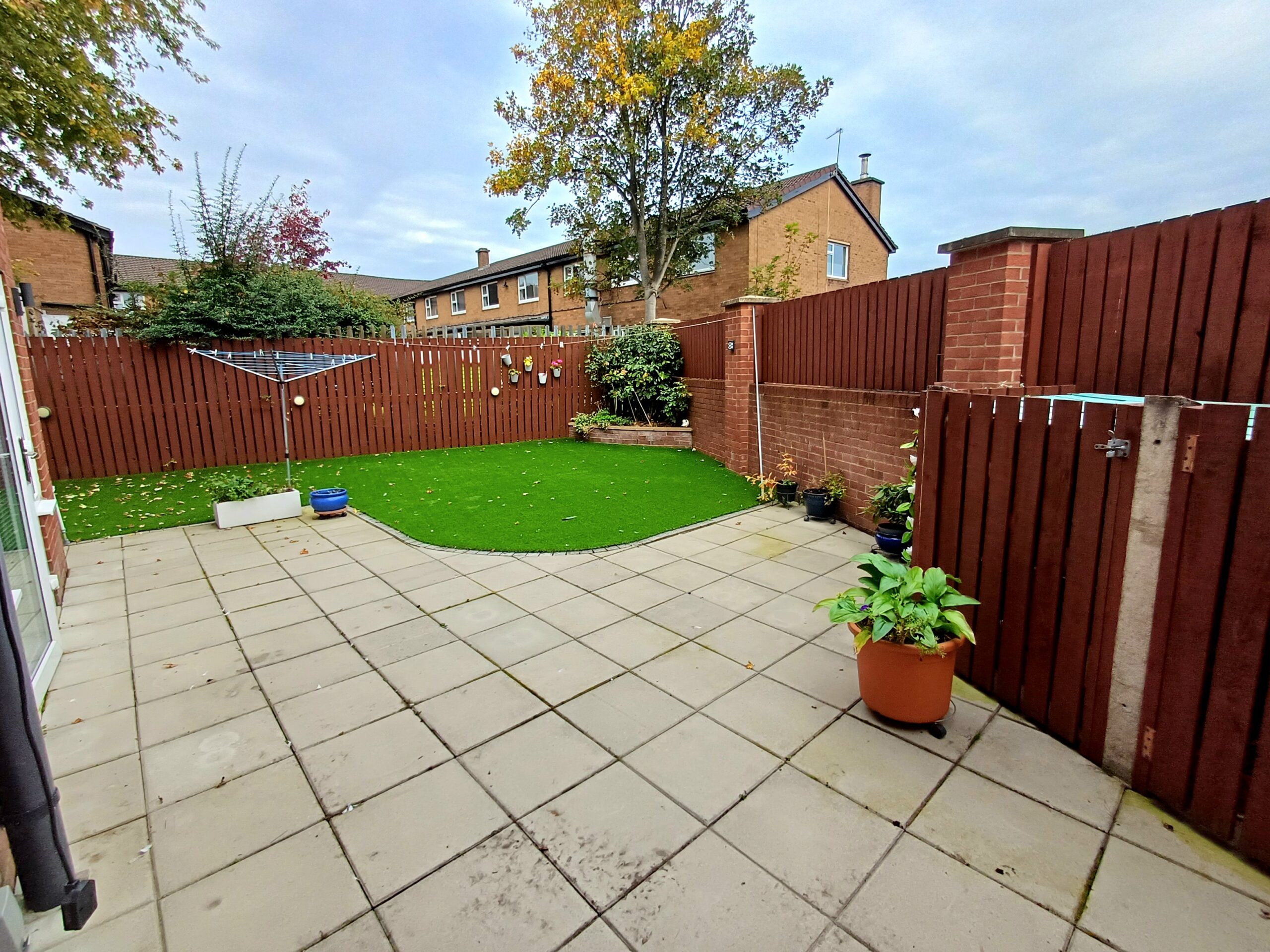 To the front there is a driveway providing off road parking with side access to the rear garden, which is laid with artificial turf and a patio area.