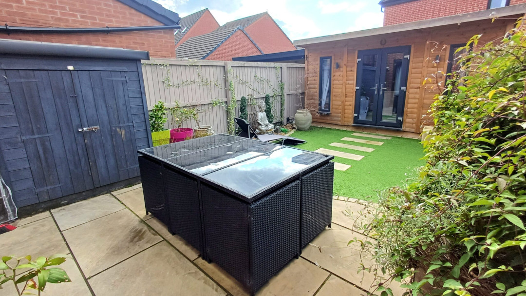 Externally the property occupies a corner position with a driveway providing off road parking and garden to the side. The property also overlooks a well maintained, grass play area. NB. Summer house not included in sale.