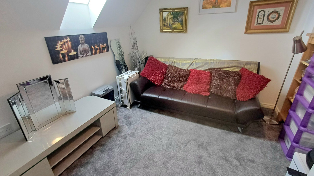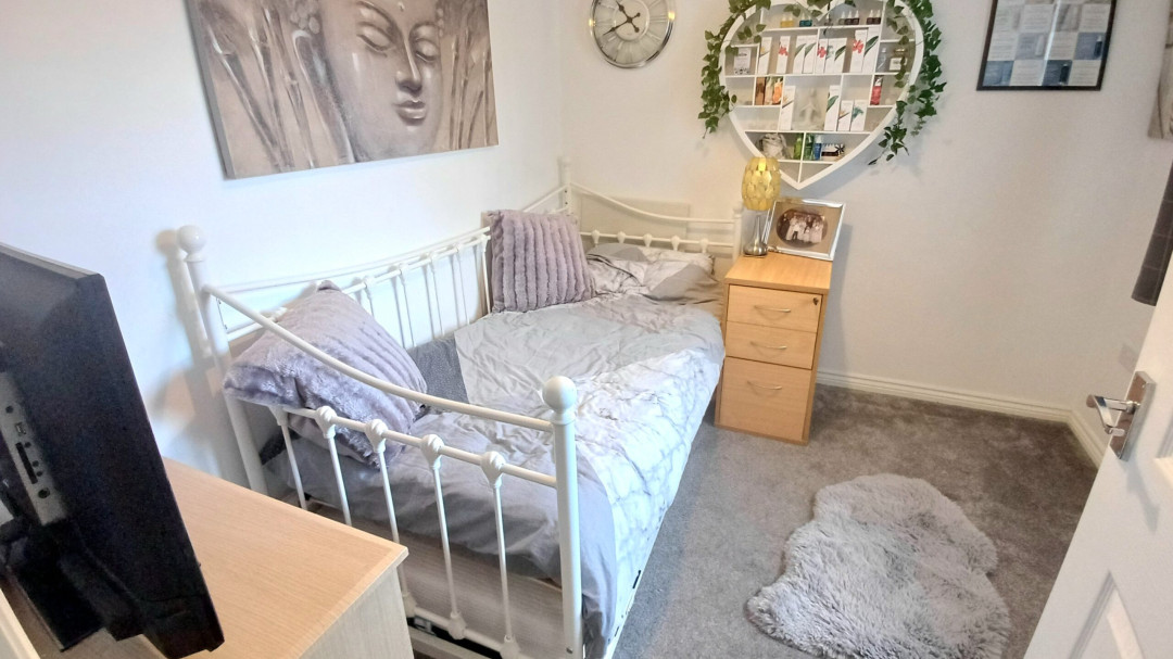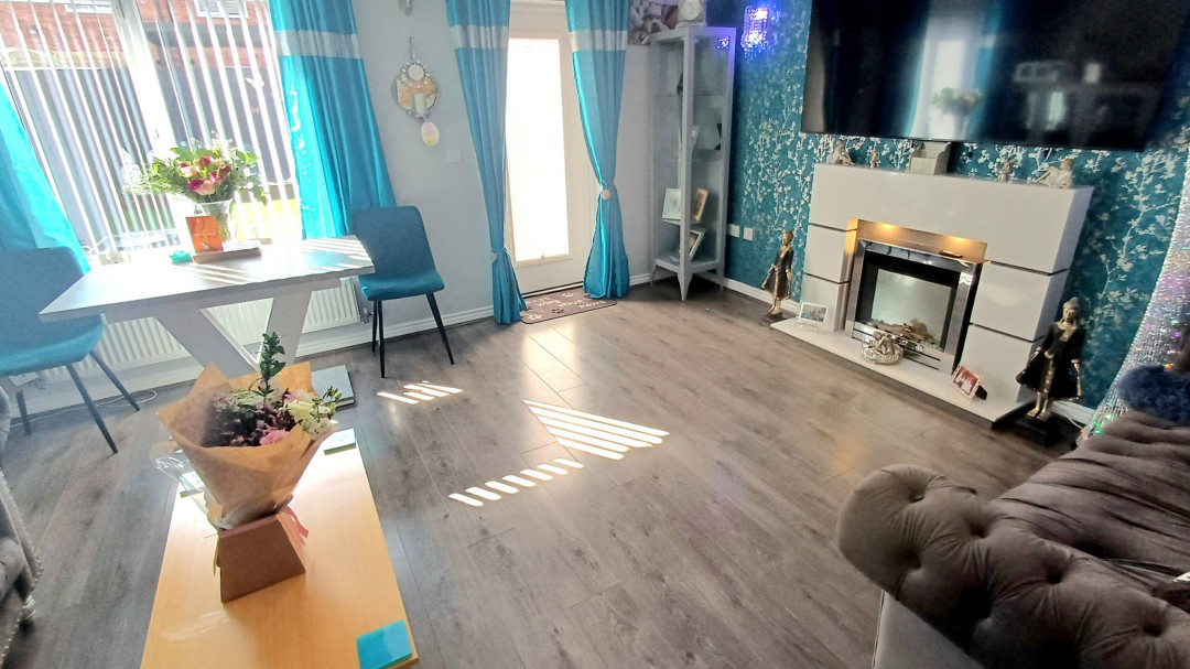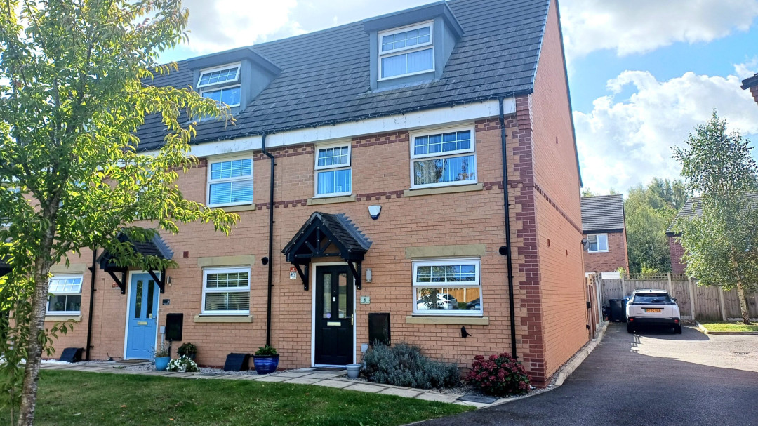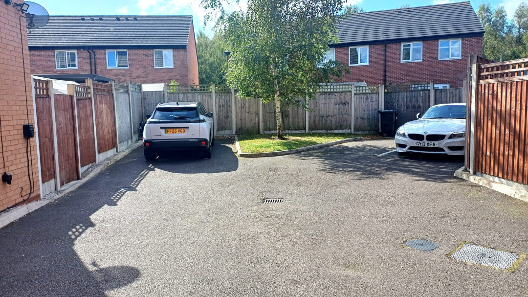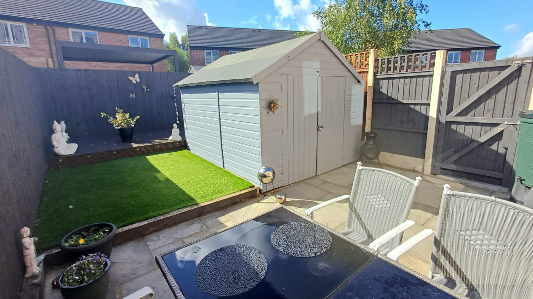 Externally to the rear there is an enclosed garden with artificial turf, raised decking area, patio and shed. An Allocated parking space, with an EV charger point, is situated to the side of the property.