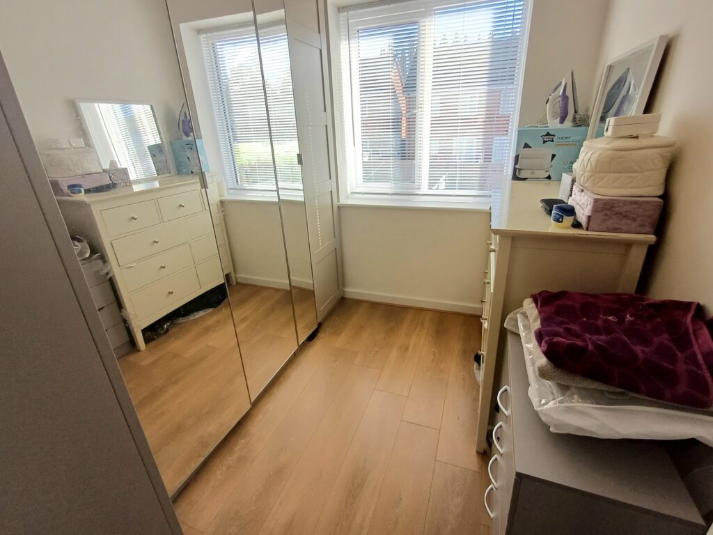 Laminate flooring, radiator, window to rear, French doors to garden.