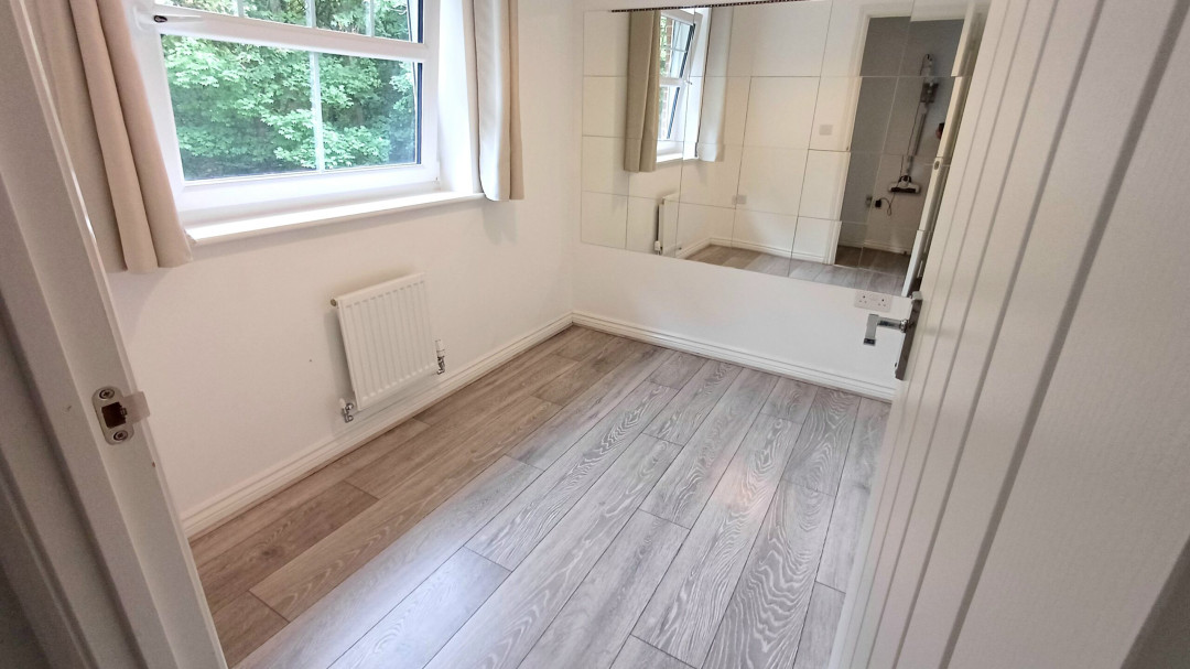 Radiator, laminate flooring, window to front.