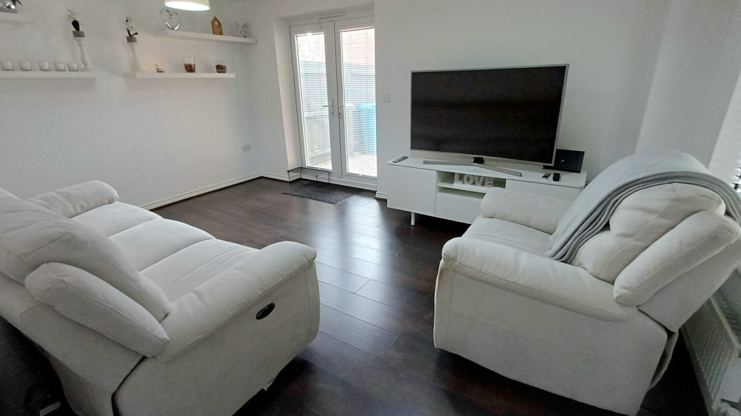 Laminate flooring, two radiators, French doors to rear garden, window to front.