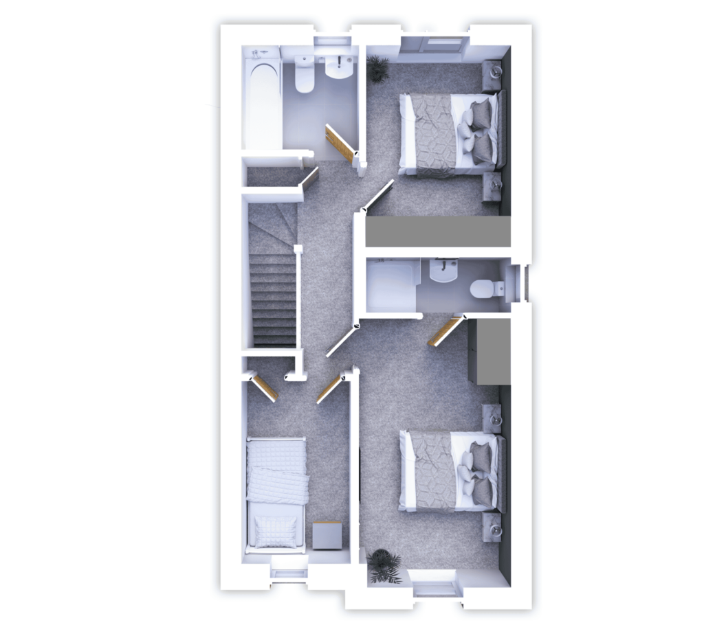 This house type benefits from three well-appointed bedrooms upstairs, all offering a balance of comfort and space. The master bedroom also comes with the luxury of its own en suite bathroom, providing added convenience and privacy.