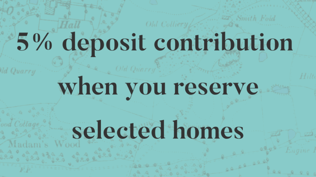 *Up to 5% deposit contribution offer available on selected plots only. Offer may be withdrawn or extended at any time. Cannot be exchanged for cash. Subject to lender’s approval. Maximum incentive cannot exceed 5% of the property purchase price. Offer must be claimed before reserving a property. Cannot be used in conjunction with any other offer. Please speak to a Sales Advisor for more information.